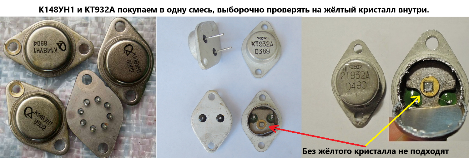 — Транзисторы КТ 630,830,831,505, КТ 814-817, КТ 911, КТ 930,931,958, КТ 970;